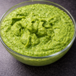 Am început cu mazărea. Am fiert-o aproximativ 10 minute, cât să rămână verde și dulce, apoi am pasat-o cu puțin unt ( daca tineti post puteti adauga putin ulei de masline), un strop din apa în care a fiert și un praf de sare. A devenit un piure fin, cremos, cu o culoare verde intens care îți dă deja senzația de prospețime. Am condimentat după gust, apoi am adăugat și o lingură de smântână grasă.
