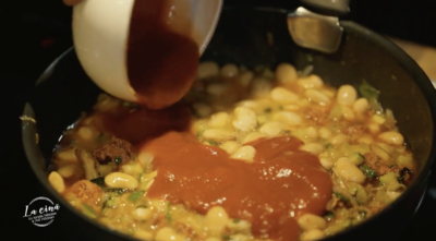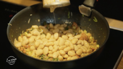 Servire fasole albă cu cârnați