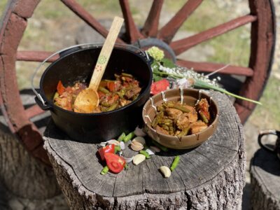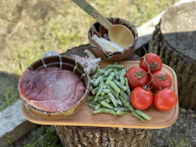 Am ales să păstrez farmecul rustic, așa cum îl știu de mică. Ceaunul cu porc și fasole verdearată nemaipomenit în castroane de lut, exact ca odinioară — când mâncarea nu era doar hrană, ci și sărbătoare.
