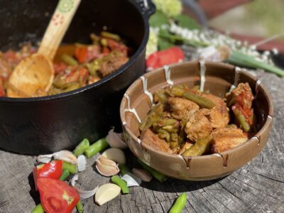 Ceaun cu porc și fasole verde — așa s-ar putea numi și o poveste, nu doar o rețetă. Pentru că uneori, o mână de ingrediente puse laolaltă, sub un cer senin și înconjurați de oameni dragi, fac mai mult decât o masă — fac o amintire.