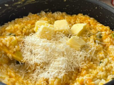 Am încorporat untul și parmezanul ras, am asezonat cu sare și piper după gust și am mai lăsat câteva minute pe foc mic, ca aromele să se întrepătrundă.