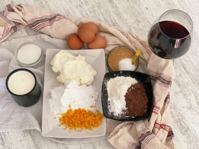 Ingrediente pentru Ruladă cu vin roșu, portocale și cremă fină de brânză: