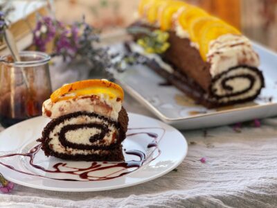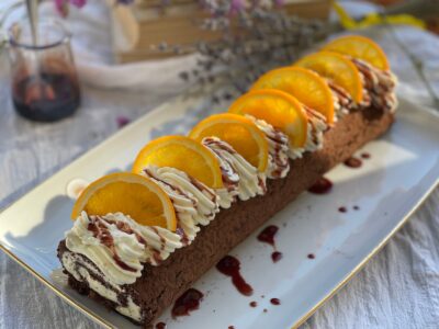 Ruladă cu vin roșu, portocale și cremă fină de brânză — un desert care te poartă instant în serile cozy de noiembrie, când vrei să te răsfeți cu ceva elegant, dar ușor de pregătit.