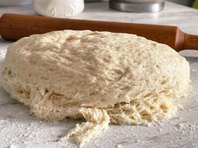 Ia uitați cât de fain arată aluatul! Perfect, mergem mai departe cu formarea cornurilor.