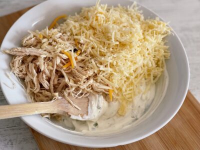 Pentru umplutura cremoasă cu pui și brânzeturi