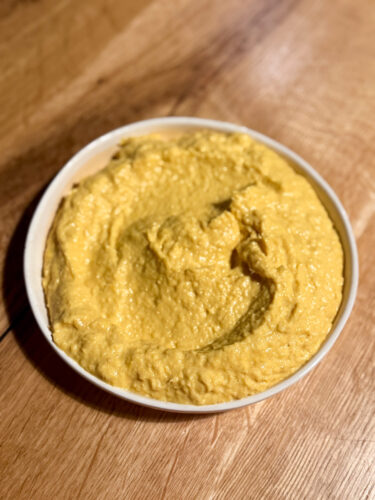 În timp ce carnea se odihnea, am pregătit crema de porumb dulce: am folosit porumb deja fiert, pe care l-am încălzit bine cu unt, într-o crăticioară, până s-a înmuiat complet. Am pasat totul foarte fin, fin, în robot, până am obținut o textură mătăsoasă. Sarea și piperul doar o completează, fără să-i ascundă dulceața naturală.