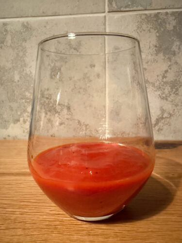 Pentru coulis, am mixat ardeii copți împreună cu puțin din lichidul în care au fost conservați (ulei de măsline, un strop de oțet, miere și chili). Am obținut un sos foarte fin, viu colorat, cu echilibru între dulce, afumat și iute.