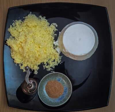 • 200 g cheddar răzuit